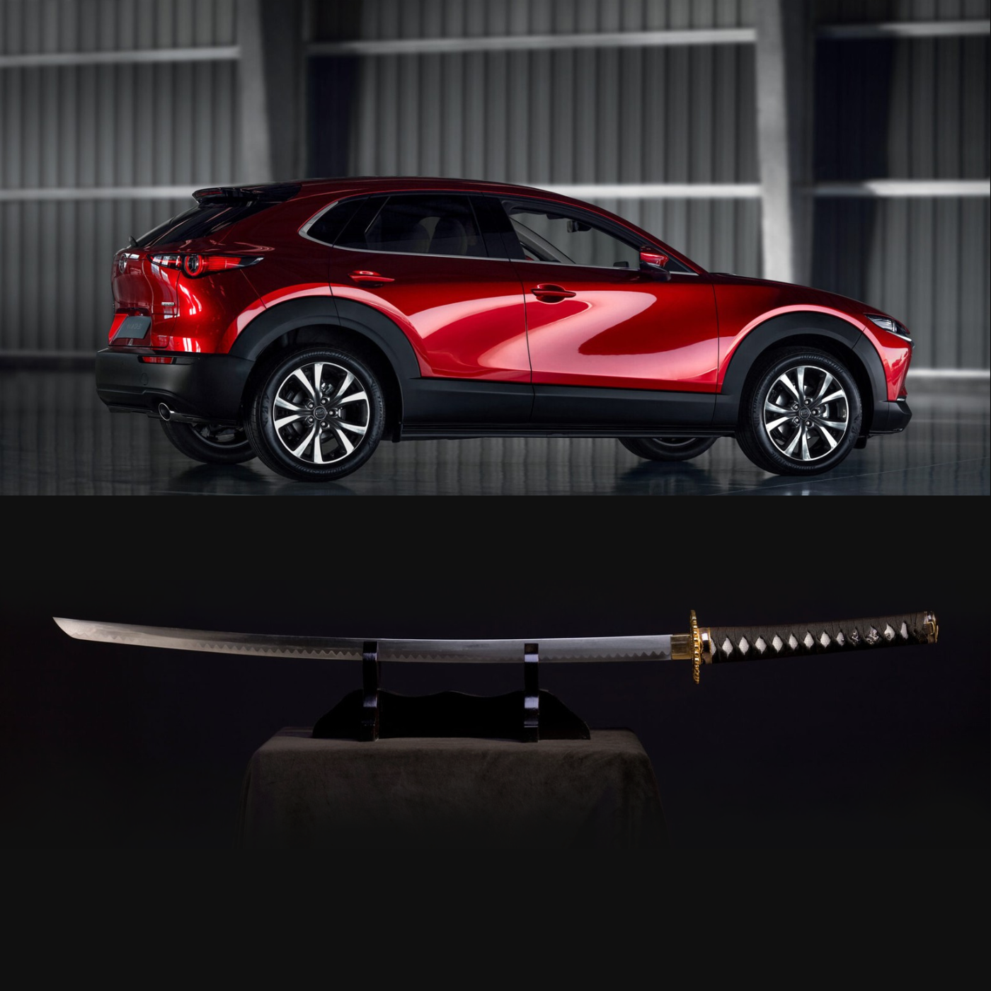 Sori describes the process of creating curves with poise and balance. It is notable in Japanese architecture and the curvature of the blade as exemplified in the samurai sword pictured below. You can see sori in the striking S-curves, revealed in the flanks of Mazda cars when light plays along them. It’s a critical part of Kodo design, as the metal sides of the car really do come to life as the light strikes them.