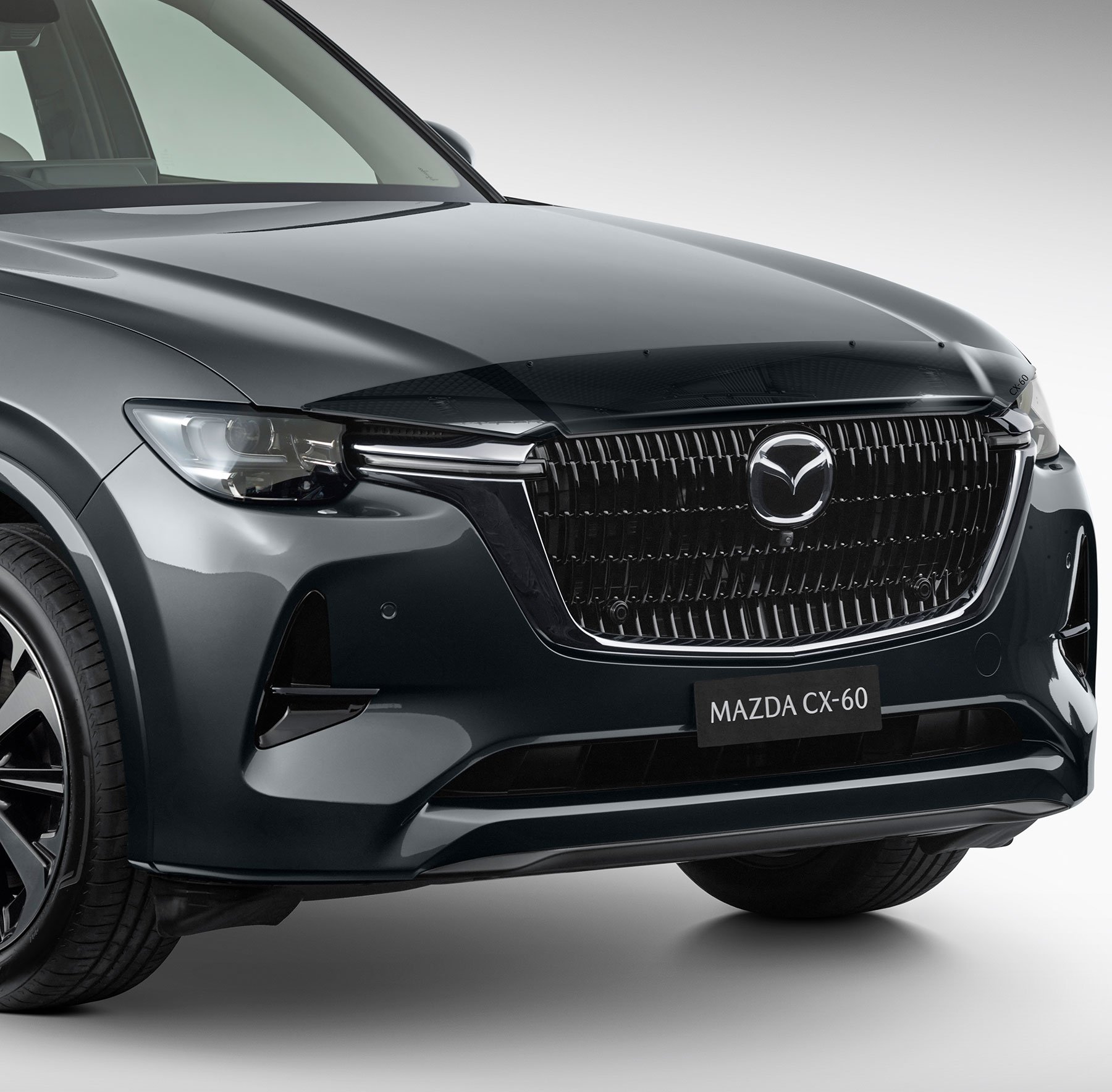 Protect your CX-60's front bonnet from rocks and shrapnel with this smoke tinted bonnet protector.