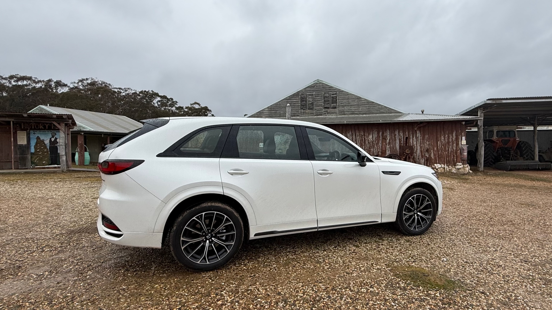 Light rain mists the scenery, a succession of bushland and farmland, all atmospheric, all wintry. It’s cold and the CX-70 is set accordingly, windows and sunroof shut tight, Nappa leather seat and steering wheel heated. And with the BOSE speakers sounding superb, the auto wipers working perfectly, and the handling feeling keen on the wet road, I really enjoy this ascent to the hills.