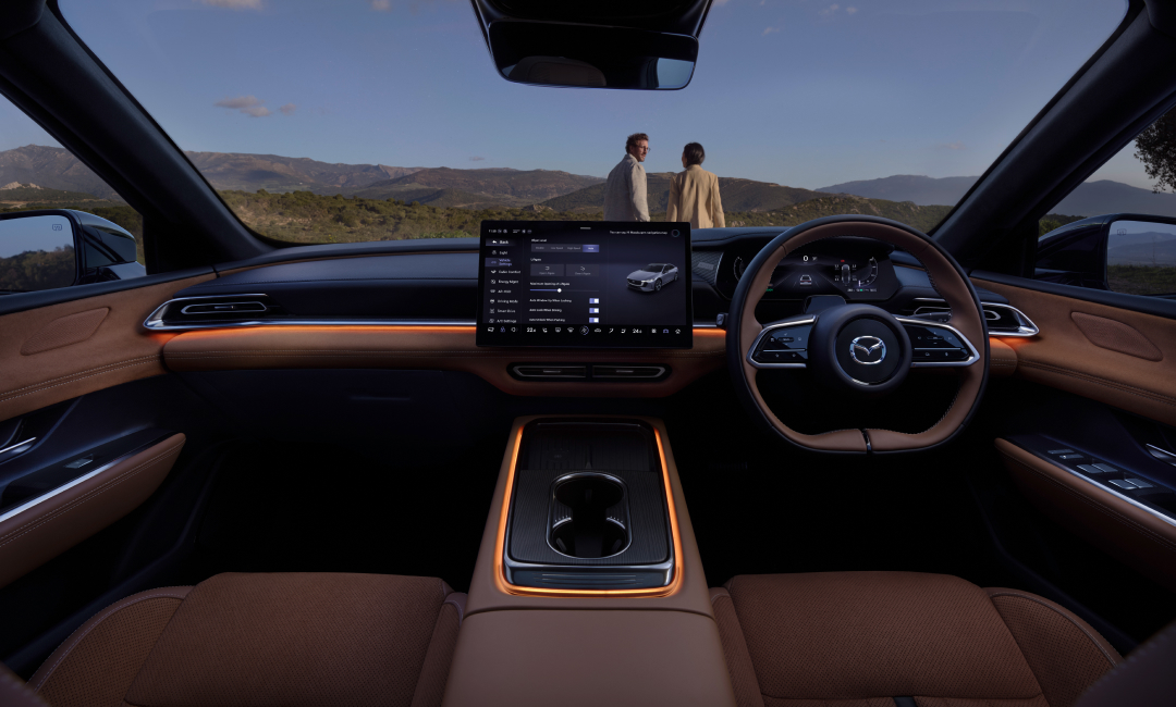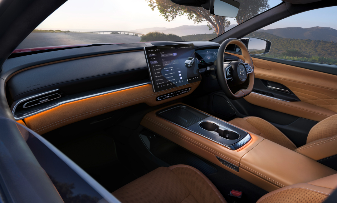 Perched on a generously sized 2,895mm wheelbase, the Mazda 6e’s minimalist five-seat cabin is open and inviting, heavily influenced by the Japanese concept of “ma” – the beauty of empty space. The seamless integration of advanced technologies and Mazda’s signature craftsmanship enhance the driving experience, while making all occupants feel at ease.