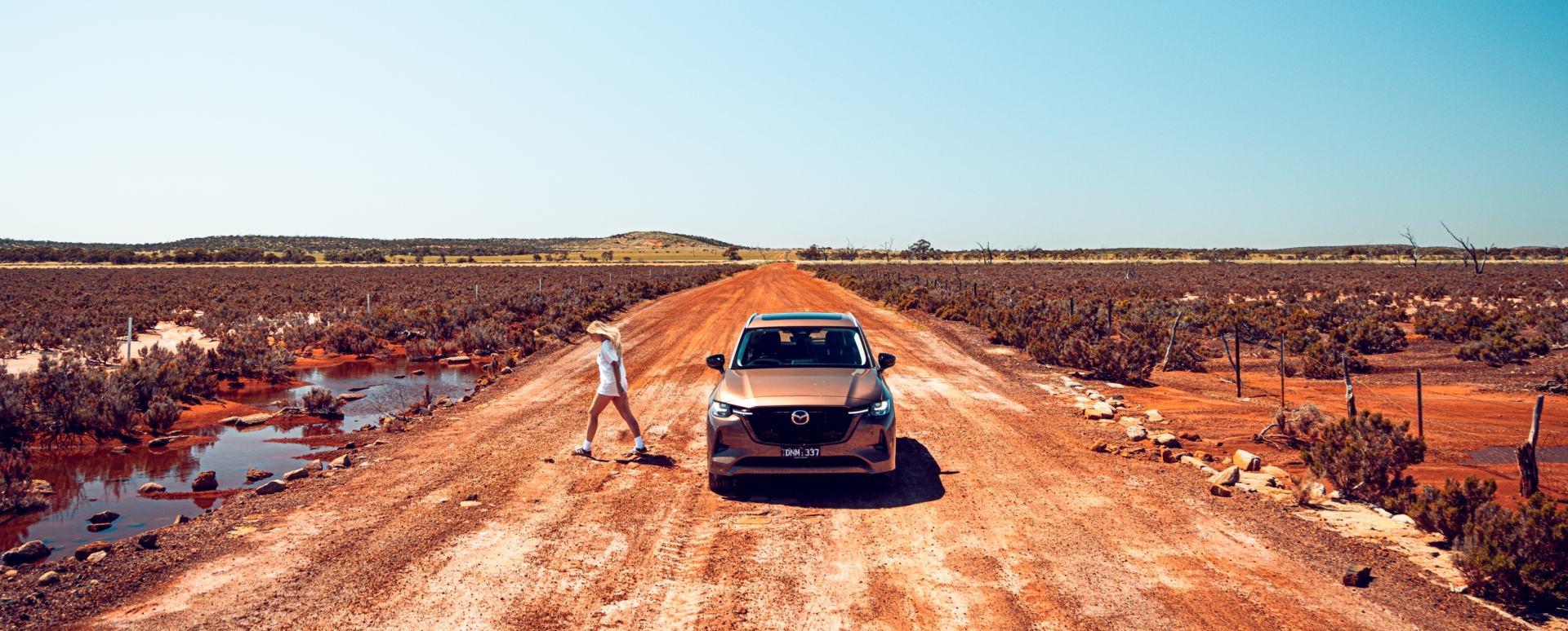 Masterfully dressed up, this land of primary colours can be brutal. It’s harshness softened only by the haven of the CX-80’s cocktail-lounge cabin; an escape from the flies, the sun and the prickles.