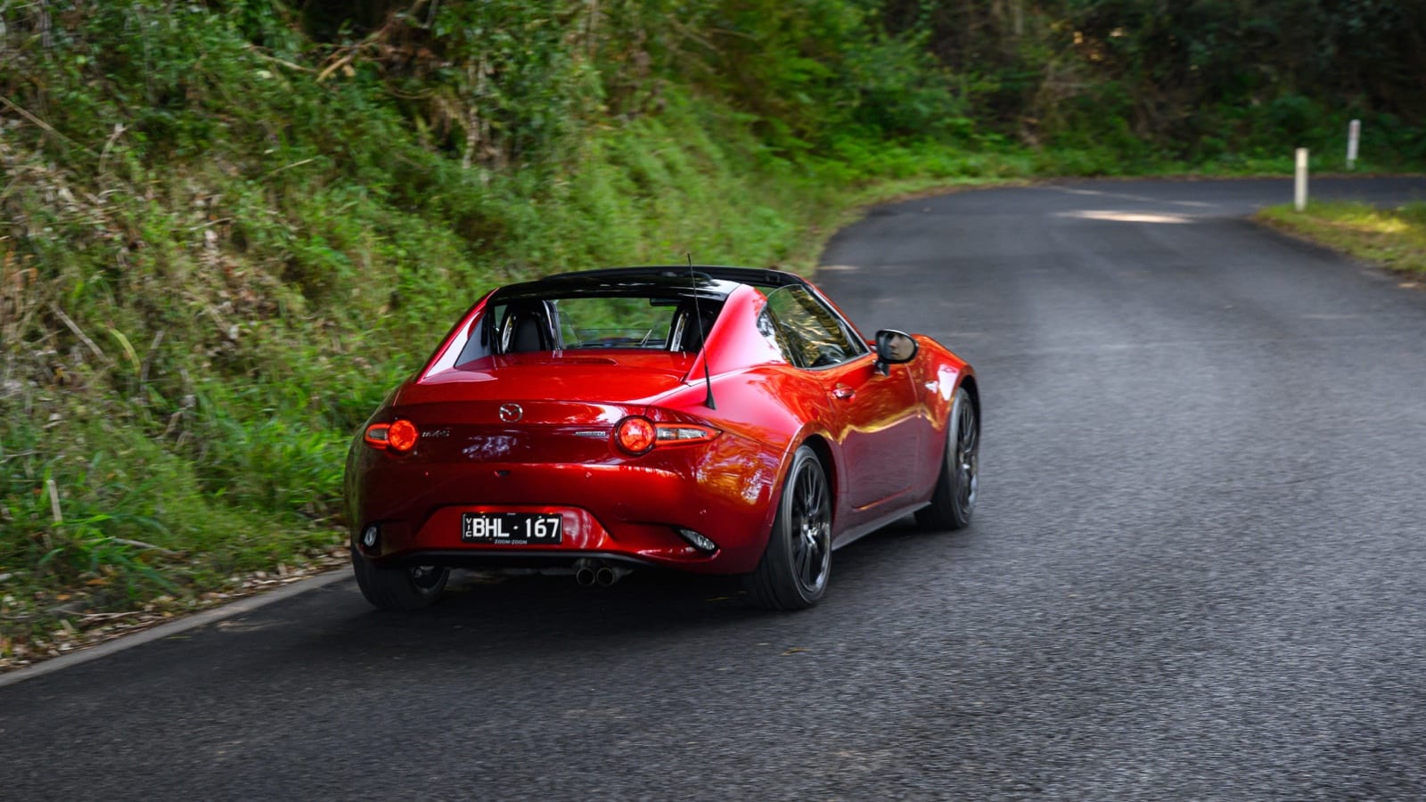 As I mentioned, one of the best things about Byron is leaving it behind, because you are so quickly into high-road heaven. Barely five minutes out of town we are on the Hinterland Highway, climbing a series of super-fast S-bends that could have been designed with our Mazda in mind.
