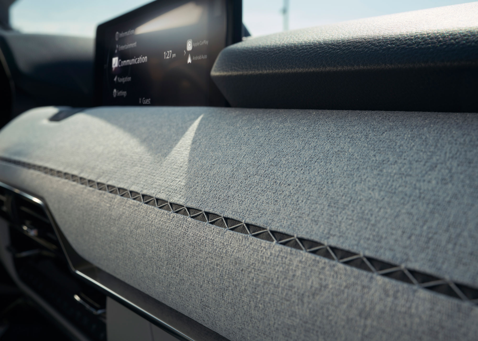 In Japan, the meticulous craft of knotting, be it securing a traditional warrior’s helmet strap or fastening a kimono, transcends into artistic expression. Drawing inspiration from musubu – meaning “to connect” or “tie together” – Mazda's designers embraced a distinctive stitching approach for its interiors (pictured) called kakenui. This hanging stitch technique introduces subtle spacing, reminiscent of the ties seen on ancient Japanese harnesses and armour, which would accommodate the natural movement of the human body. In the Mazda CX-90 (pictured), kakenui evokes a sense of connection between the car and its driver. Similarly, the gaps between the kakenui stitching add both depth and dimension.