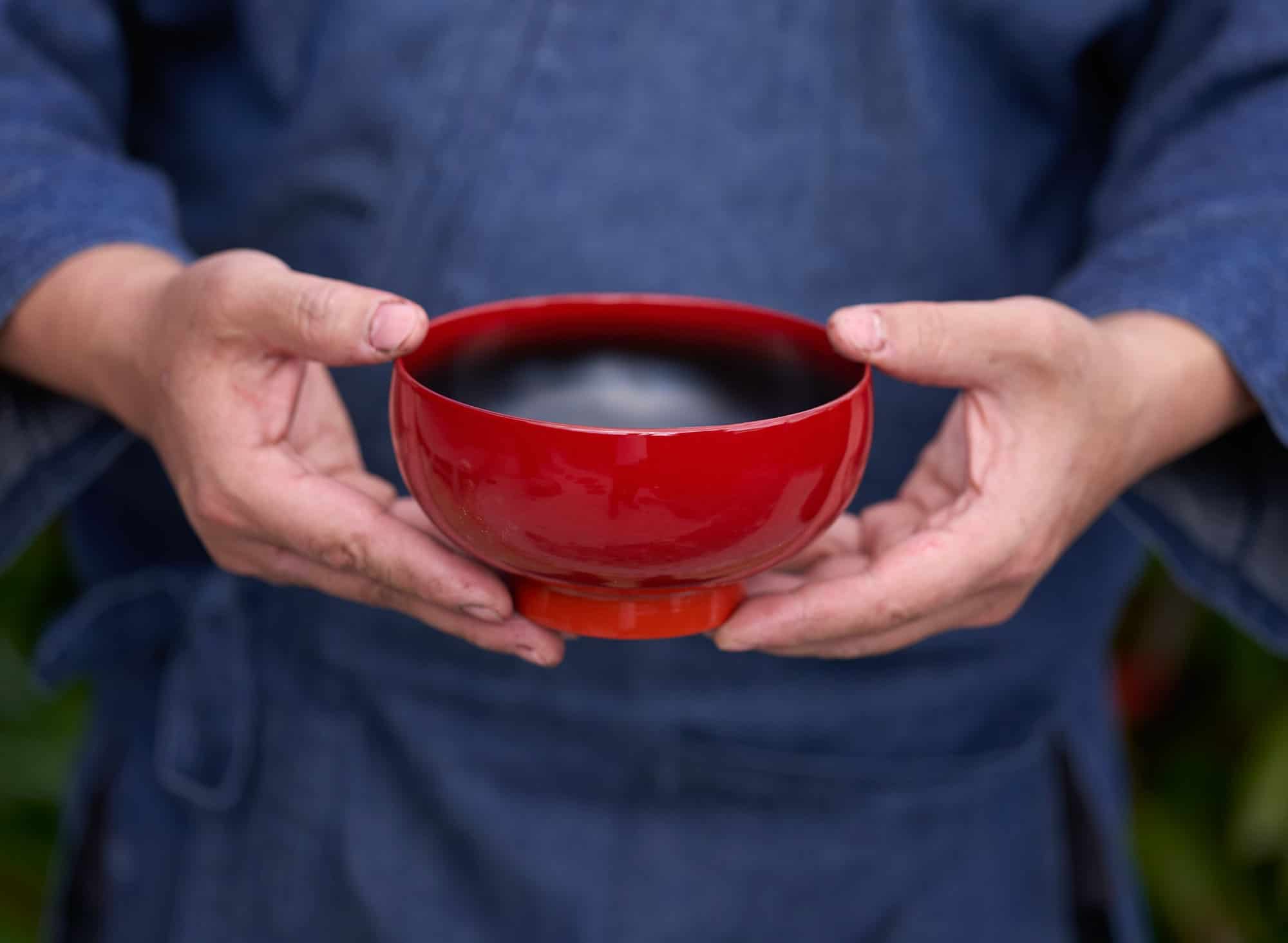 For those trying out urushi products for the first time, Takayama recommends soup bowls. “Pour hot soup into the bowl, hold it and the heat will transfer gently into your hands,” he says. “Japanese people sip straight from the bowl. Try it and you can enjoy the skin-like texture against your lips.”