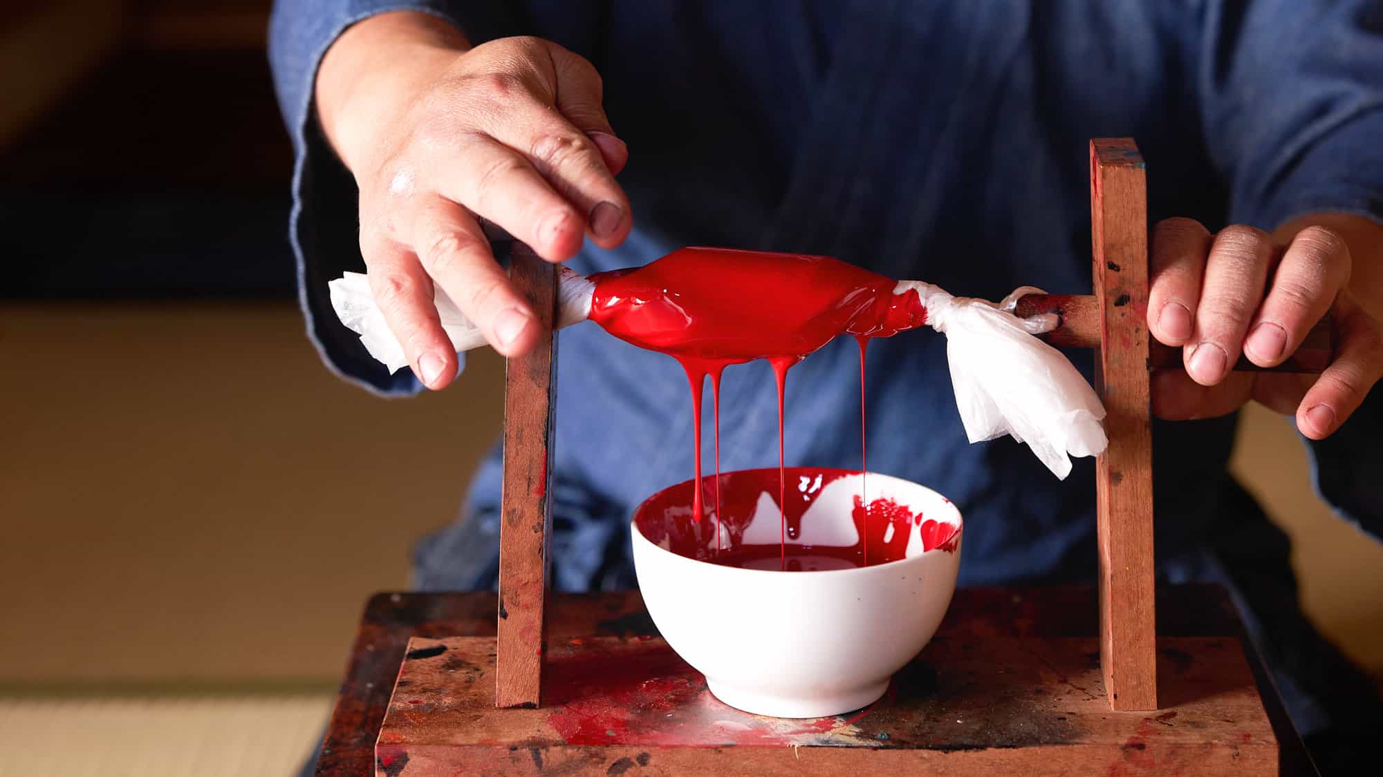 Urushi art embodies the idea, common in Japanese aesthetics, of the work being alive, of possessing an independent vitality. If a piece of lacquerware gets damaged, urushi craftsmen are on hand to give it new life. They mend it using an ancient technique called kintsugi – utilising the strong adhesive properties of urushi sap to artistically fuse chips and cracks together using gold and other metals, creating a new way for the art form to be expressed and perceived.