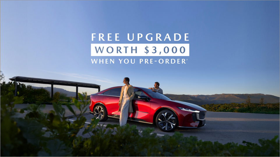 Free upgrade worth $3,000 when you pre-order. Pre-order the Mazda 6e today and receive the Atenza for the price of the GT. Available to the first 300 customers.